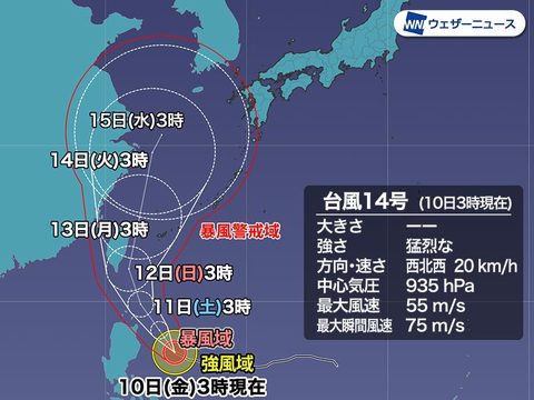 10日に東海 関東接近 強い台風14号 大雨暴風警戒 気象庁 時事ドットコム