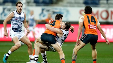 Get breaking news alerts directly to your phone with our app. The Giants hit the Danger Field forward in their throat while trying to dodge a tackle from the Cats midfielder in the first quarter of. AFL to appeal Toby Greene suspension for intentional contact GWS Giants news.