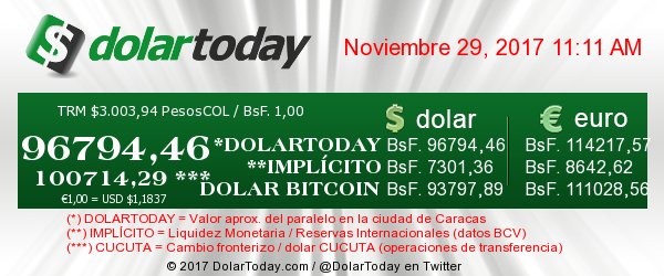 Hambruna pobreza y miseria fue lo único que nos dejo esta mal llamada revolución. Through Instagram and Twitter the Dollar Monitor accounts also published their quotation reports. It also has more than 3 million Twitter followers updating them with the up-to-date exchange rates.