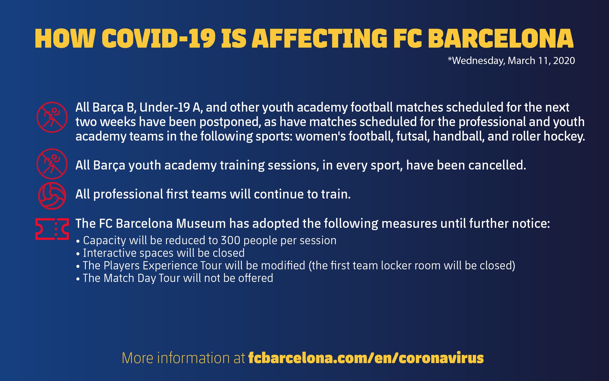Fc Barcelona On Twitter News Update The Latest Developments At Fc Barcelona Due To The Coronavirus Situation Https T Co Fksmpbivzx Practical Information Https T Co Doyj2p58gh
