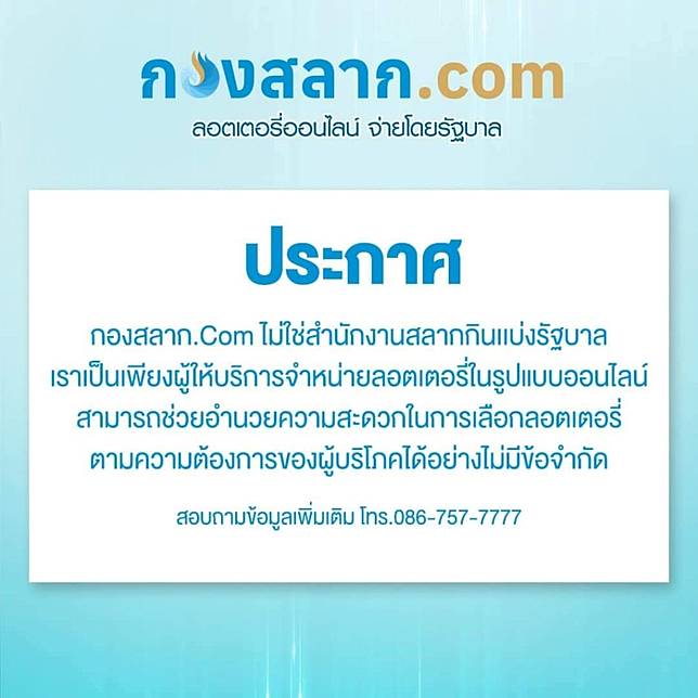 เว บไซต Www กองสลาก Com ช แจงจำหน ายลอตเตอร ราคา 80บาท ม อย จร ง ถ กต องตามกฎหมายกำหนด